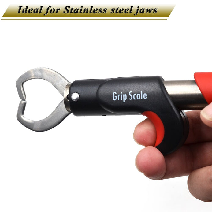 This lip grip scale is ideal for Professional Anglers. Non-slip rubber grip Integrated 25 kg scale. Stainless steel construction for fresh or saltwater use. ”Swivel jaws enhance control, reduce stress on both fish & angler and the non-slip rubber handle provides extra gripping power and control, even when wet.