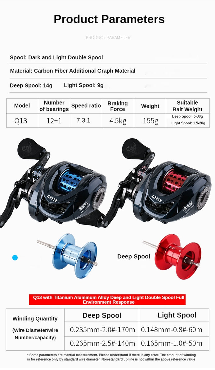 PureLure Q13 155g 4.5KG Drag 7.3:1 Baitcasting Reel