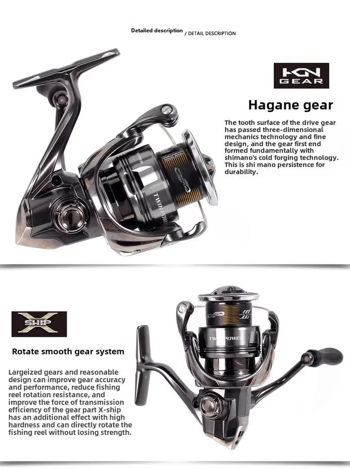 Continuously exploring the possibilities of spinning reels and evolving TWINPOWER, the consistent style from the first generation to the latest specifications is to not make unnecessary modifications, focus on the durability of actual fishing, and pursue functional improvements. The core concept of perseverance brings peace of mind to anglers, while the experience brought by TWINPOWER will also be engraved in everyone's hearts. TWINPOWER also follows the advanced SHIMANO technology carried by STELLA this time, equipped with technologies such as INFINITYXROSS, INFNITYLOOP, INFINITYDRIVE DuraCROSS, ANTITWIST FIN, etc. Each part pursues functionality and constantly gets closer to anglers. Extending the wire cup makes the qualifying process smoother and increases the throwing distance. X PROTECT waterproof technology: The body, unloading knob, wire cup and other gap areas are strongly protected, and strong waterproof isolation technology is used on water invading lines. It can also demonstrate high durability under extremely harsh conditions, and is equipped with X-Protect to achieve a waterproof rating for the body.