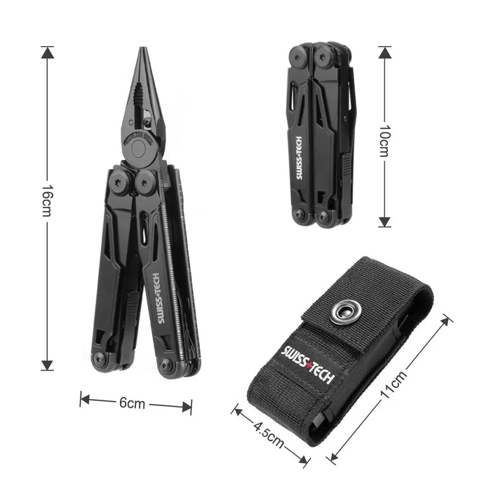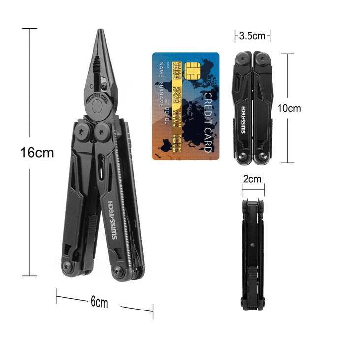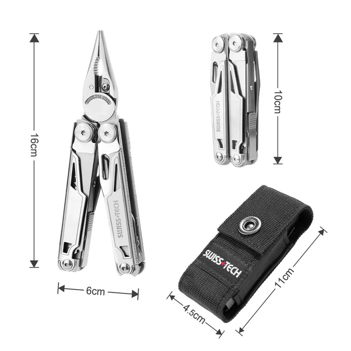 The SWISS+TECH 16 in 1 Multitool is the ultimate tool for any situation. With 16 unique functions, this multitool can handle any task with ease. Its compact design makes it perfect for on-the-go use, while its high-quality materials ensure durability and reliability. Whether you're fishing, camping, working on DIY projects, or just need a quick fix, this multitool has got you covered.  Add one to your tackle today!