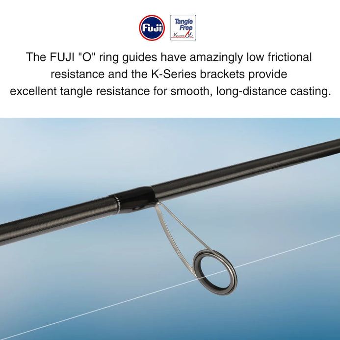 The FUJI "O" ring guides have amazingly low frictional resistance and the K-Series brackets provide excellent tangle resistance for smooth, long-distance casting.