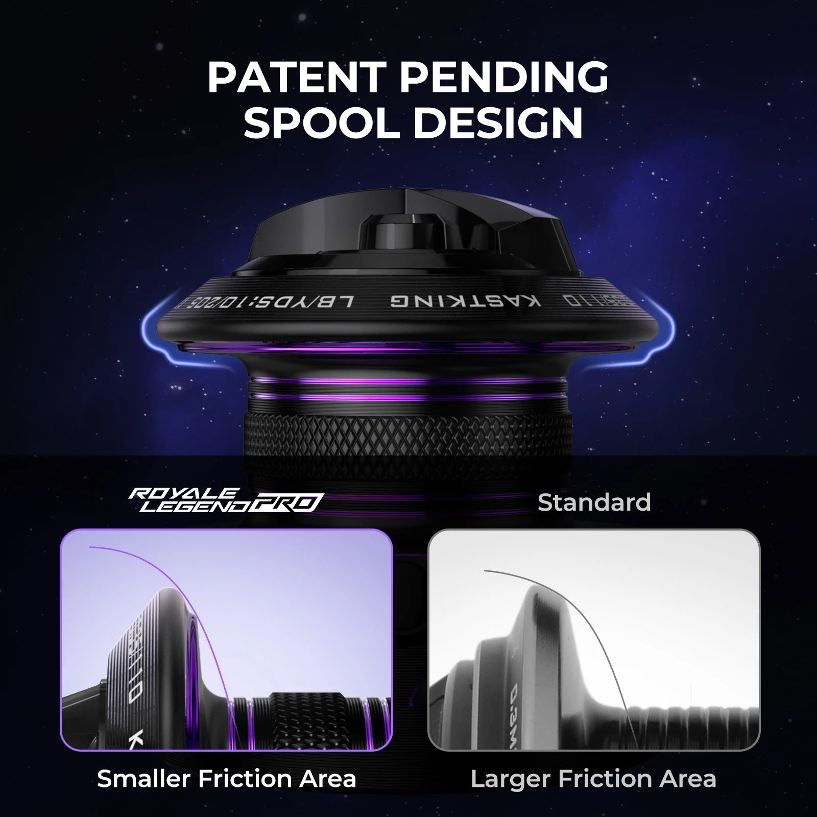 • Voted as Fans' Favorite: the Royale Legend Pro spinning reel's celestial-inspired paint scheme was chosen by our fan base, and features captivating colors reminiscent of the cosmos. The special Celestial paint reflects light uniquely, giving the spinning reel a mesmerizing appearance that shifts with every angle, ensuring each fishing trip is an unforgettable starlit adventure.