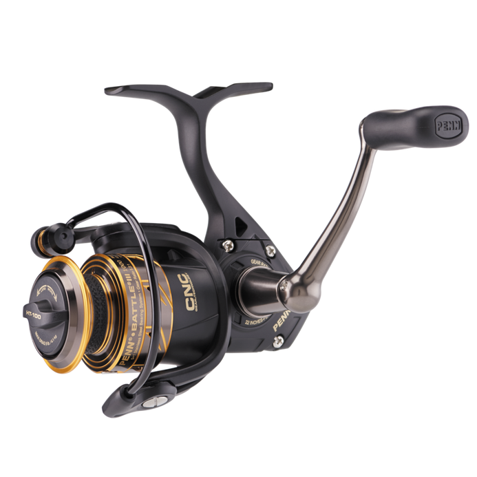 The PENN BATTLE III Spinning Reel is a precision-built tackle box staple. Featuring 5+1 ball bearings for smooth operation, it offers multiple gear ratios of 4.7:1, 5.6:1, and 6.2:1 to meet your fishing needs. The sealed HT-100 drag system offers anglers a reliable and consistent drag.