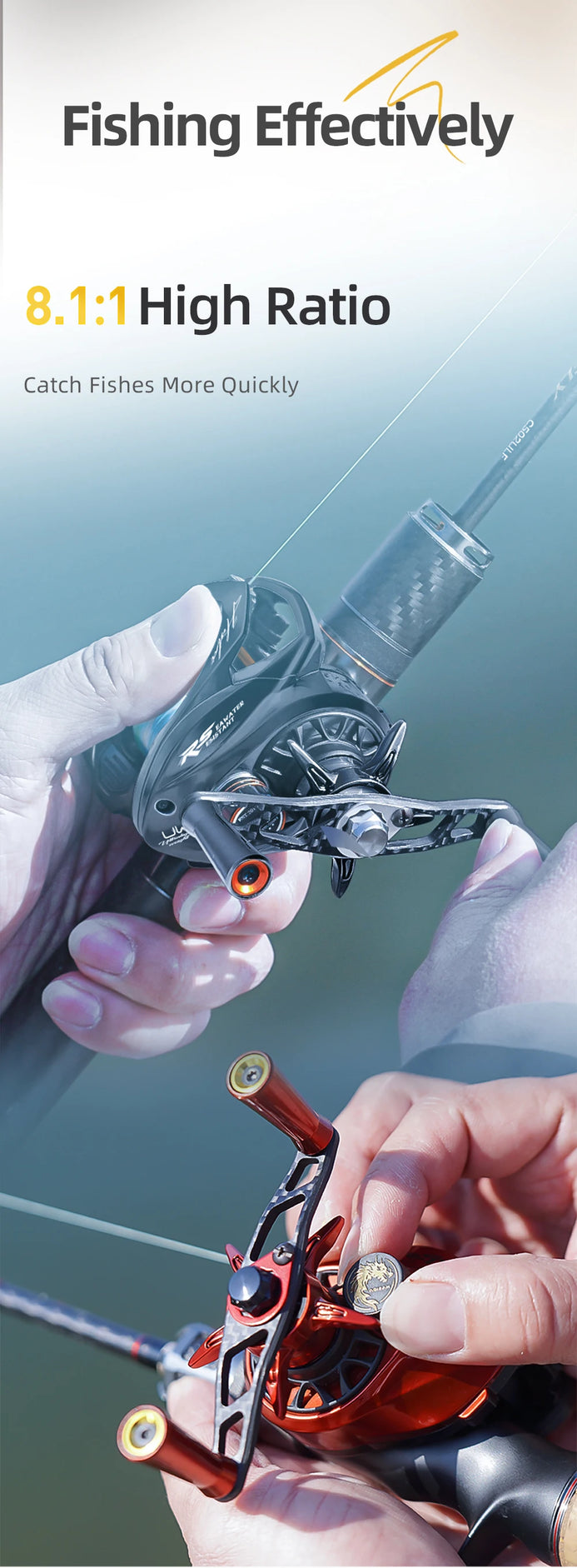 8.1:1 high-speed gear ratio for rapid retrieval |