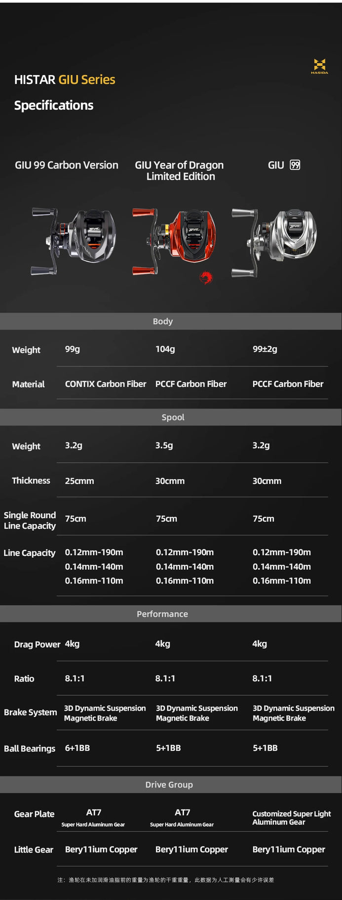 Histar Giu 99 Carbon BFS Baitcasting Reel 8.1:1 4KG Drag Power