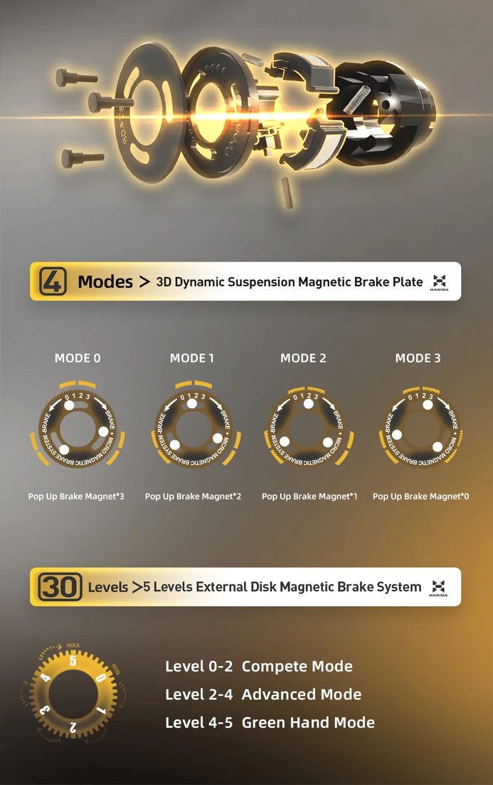 3D dynamic suspension magnetic brake (4 modes) |