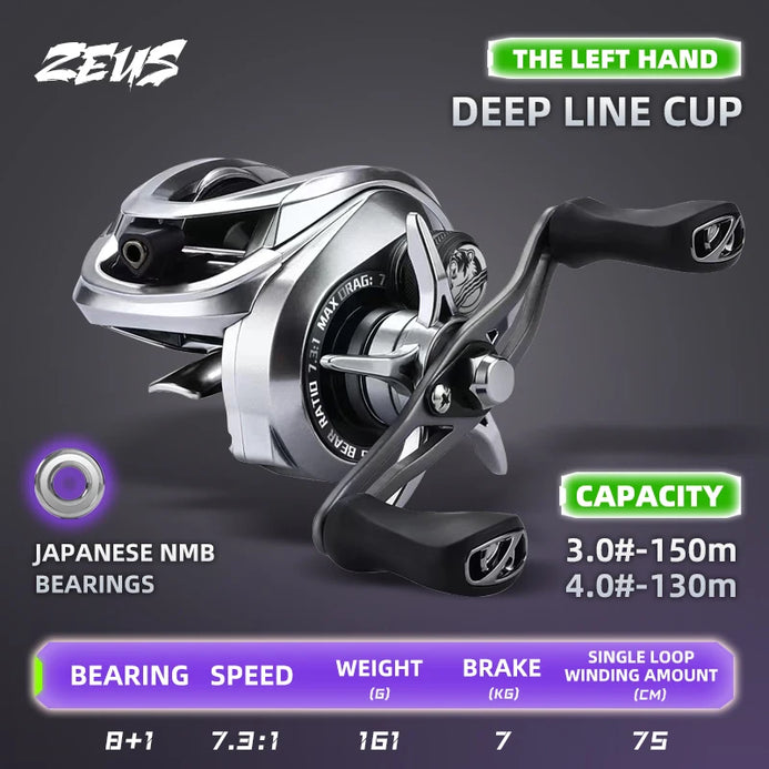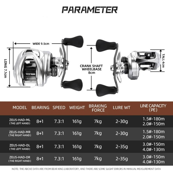 BearKing Zeus Pro Carbon BFS Baitcast Reel 8+1BB 7Kg Max Power 7.3:1