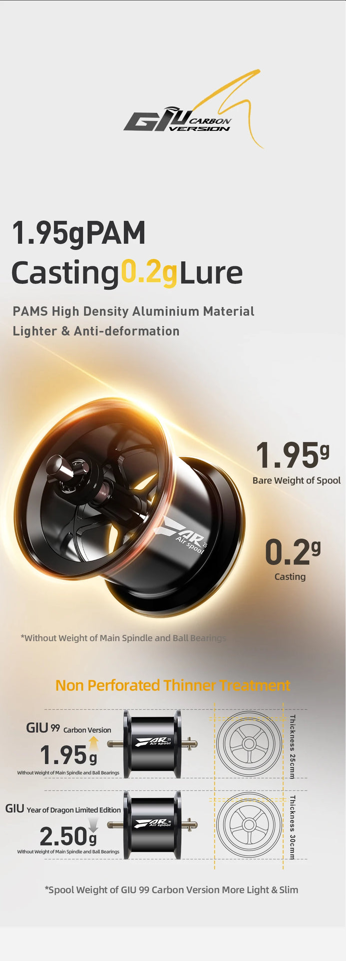 PAMS high-density aluminum spool (1.95g bare weight) |
