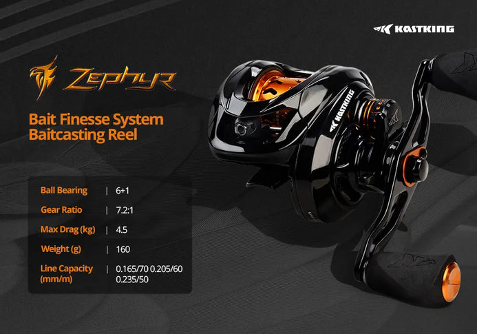 PRECSION BUILT – HI-END COMPONENTS- KastKing BFS Zephyr baitcaster reels have undergone an extensive design and manufacturer process that gives you the lightness and strength of carbon fiber plus the durability and smoothness of precision gears and double shielded stainless steel ball bearings in a fishing reel that only weighs 5.6oz.