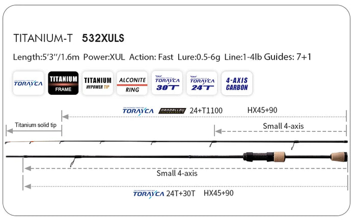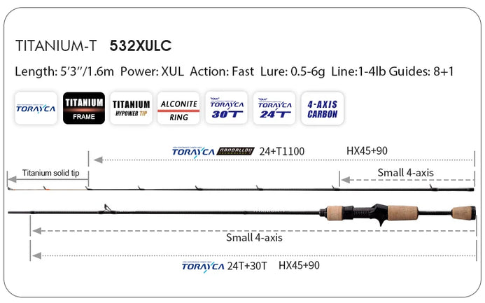 PureLure TITANIUM-T XUL BFS Spinning/Casting Rod 0.5-6g Bait Weight 5FT/6FT F/MF Action