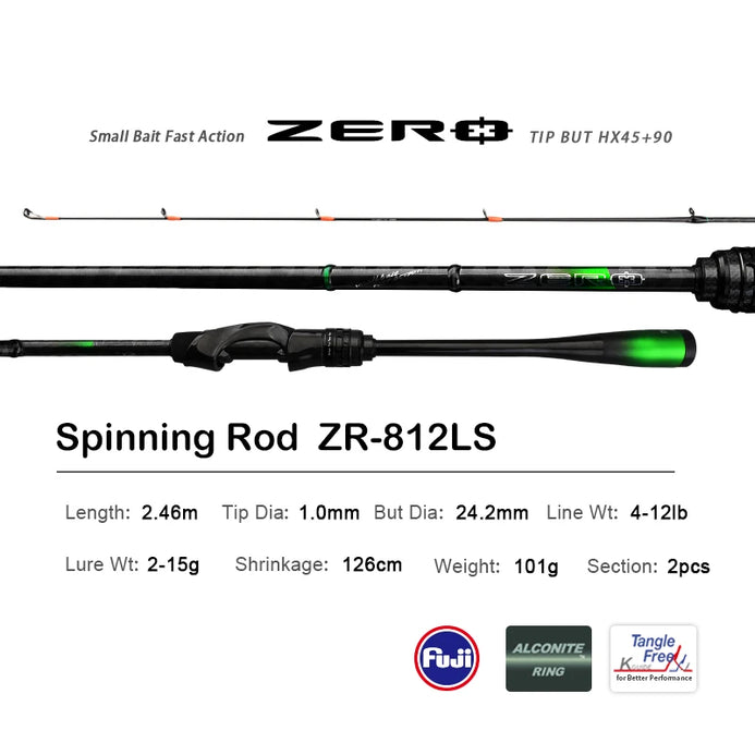 The ZERO series of lightweight shore-casting root fishing rods takes a incorporates new design concepts and root fishing concept and applies it during the production process. All models feature a solid reinforced tip setup, which allows for a more subtle and flexible mimicry effect on rigged baits. In order to ensure undefined high-performance and light weight, all rods are made of Japanese Toray carbon cloth. Fuji ALCONITE series guides are also fitted.