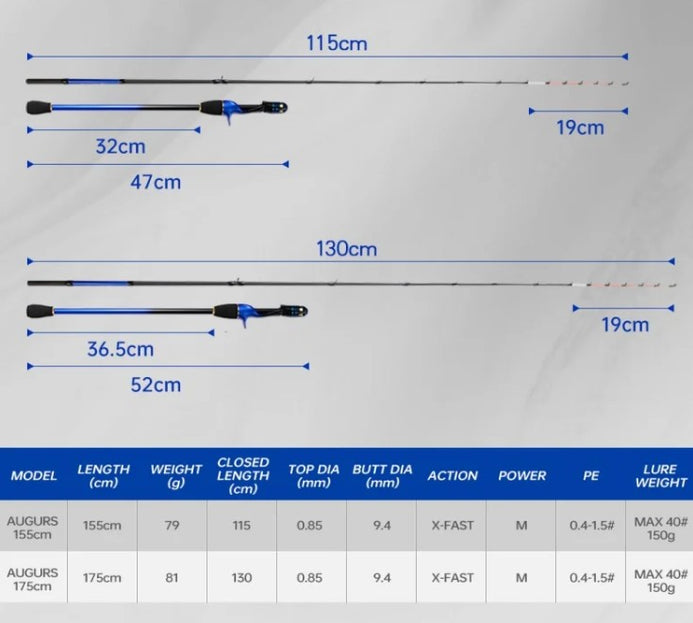 1. 【Light Weight 】-- 1.55m 79g , 1.75m 81g , use 40T carbon fiber, ensure solid rod performance