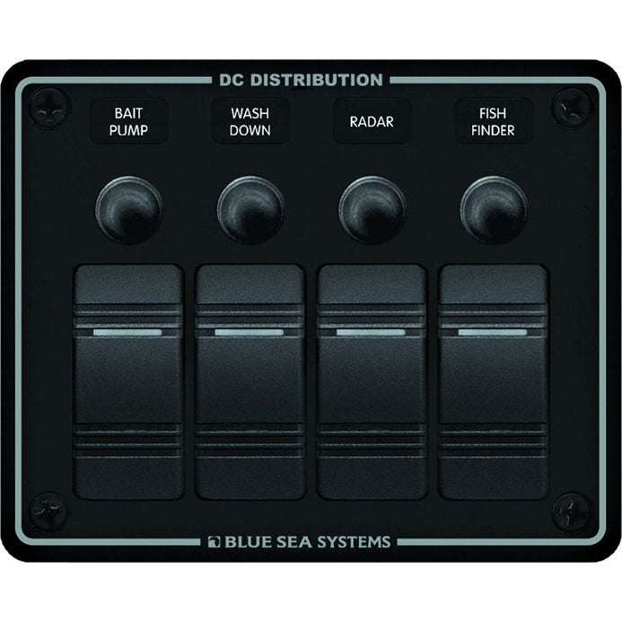 Blue Sea 8372 Water Resistant 4 Position - Black - Horizontal Mount Panel