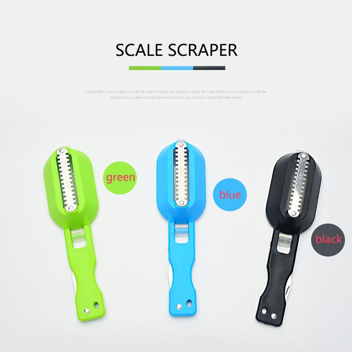 This highly durable fish scaling brush captures scales removed keeping your fish and work area clean and free of flying scales!  With its non slip handle design and folding sharp knife whats not to love about this handy scaling tool!  Available in 3 colors.