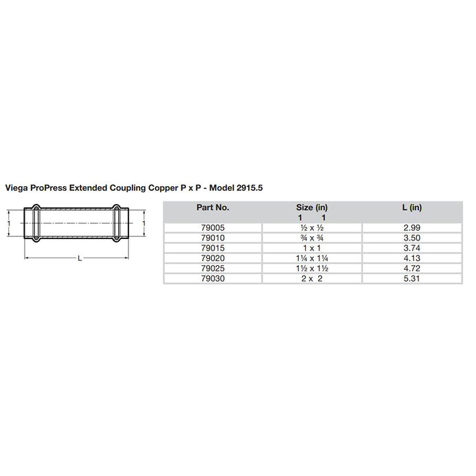Viega ProPress 1-1/2" Extended Coupling w/o Stop - Double Press Connection - Smart Connect Technology