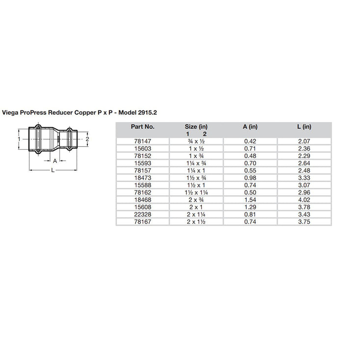 Viega ProPress 1-1/2" x 1" Copper Reducer - Double Press Connection - Smart Connect Technology