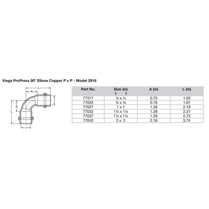 Viega ProPress 1" - 90 Copper Elbow - Double Press Connection - Smart Connect Technology