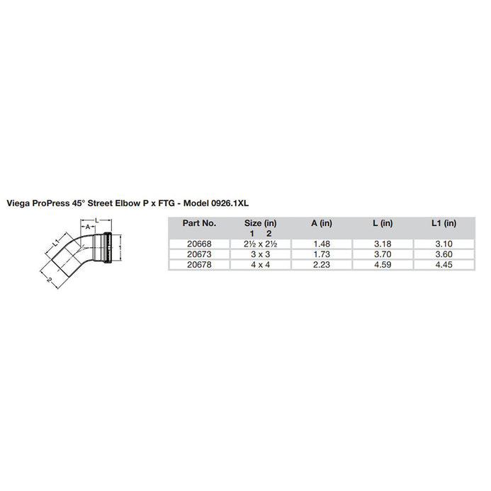 Viega ProPress - 2-1/2" - 45 Copper Elbow - Street/Press Connection - Smart Connect Technology
