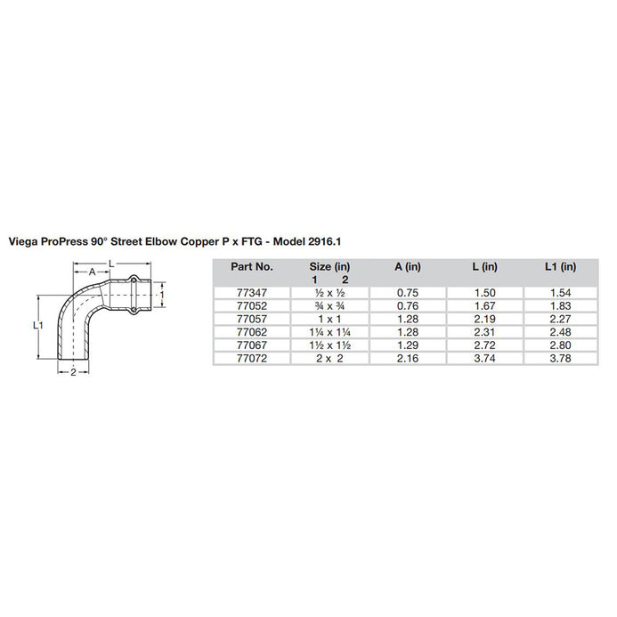 Viega ProPress 3/4" - 90 Copper Elbow - Street/Press Connection - Smart Connect Technology