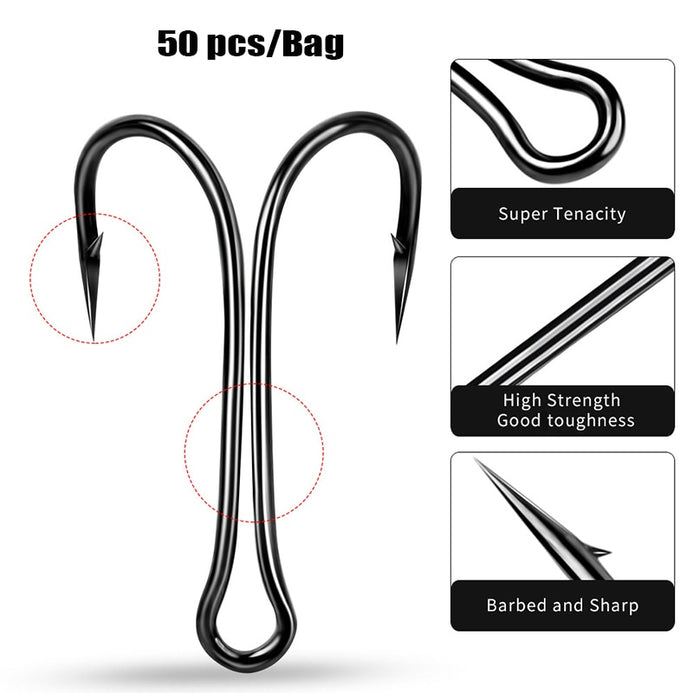 FTK 50Pcs/Lot Classic Double Frog Fishing Hooks