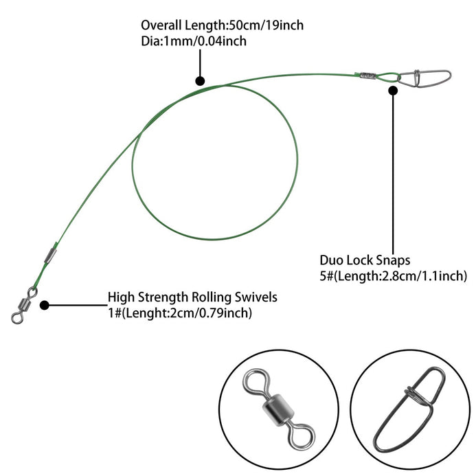 10Pcs/lot 50cm Heavy Duty 150Lbs/68kg Steel Wire Leader with Swivel
