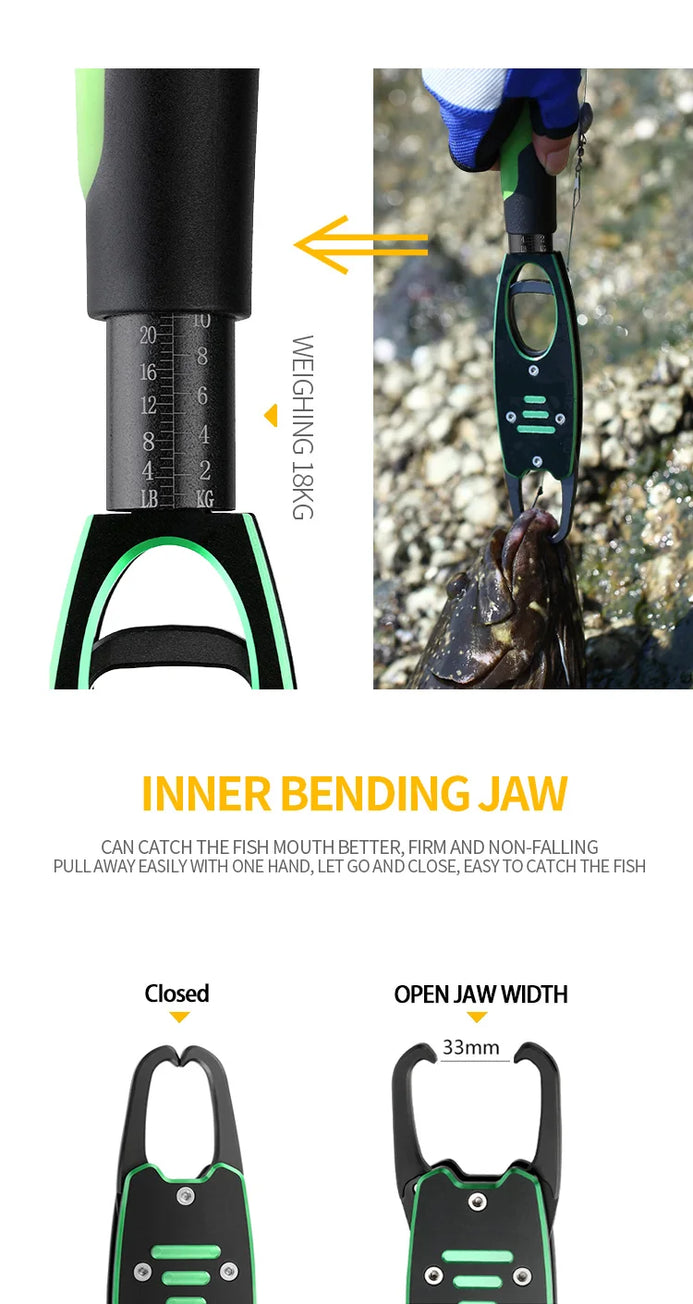 1. The fishing grip can weight fish anywhere,the max weight is 15KG/33LBS