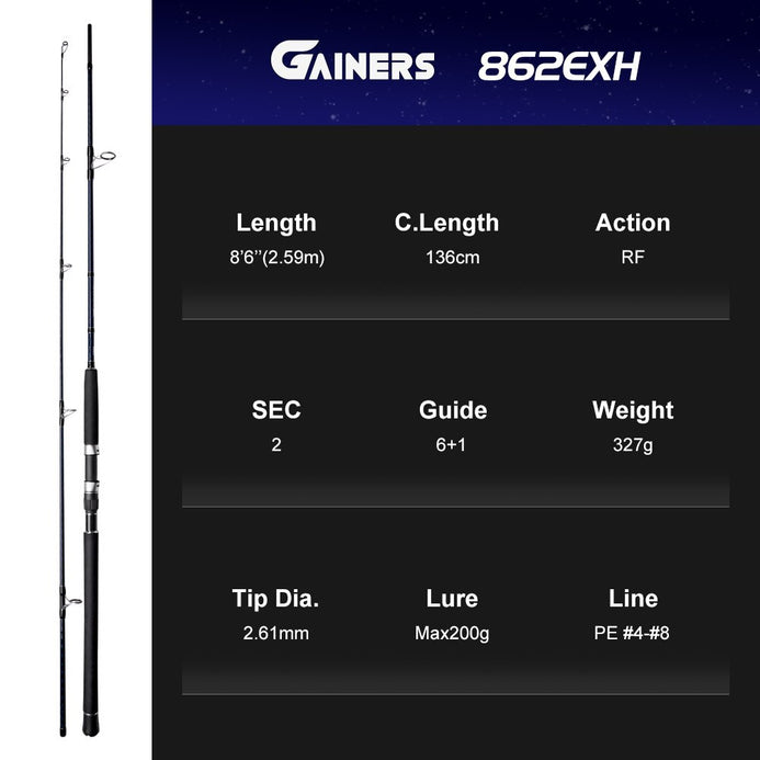 Experience the thrill of big game fishing like never before with the Noeby Gainers Heavy Game Fishing Rod. With durable construction and a range of sizes from 8 feet 6 inches all the way up to 10 feet, this rod is perfect for any challenge you’ll face out at sea. Cast your line further than ever and land the catch of a lifetime!