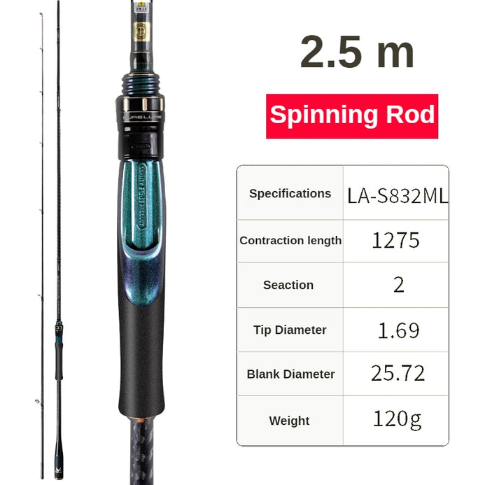 2. FUJI Reel Seat, Lightweight Design Reduces The Weight Of The Whole Rod. The Handle Adopts Two-Color Gradient Chameleon Paint in Design Of Integrated Four-Axis Carbon Cloth.