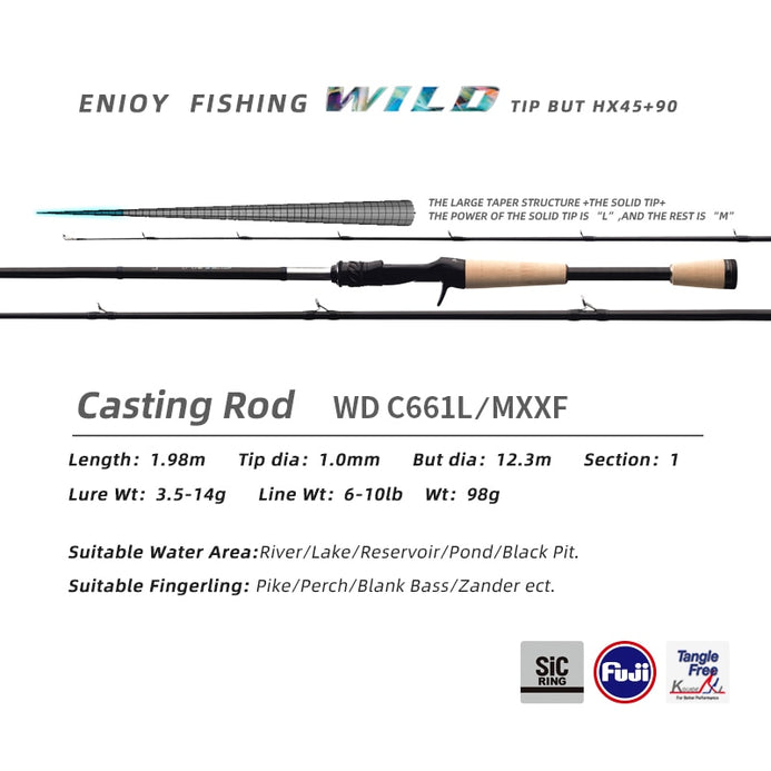 PureLure Wild 1.98m/2.03m/2.13m 1PC L/M·M·MH·ML Casting/Spinning Rod
