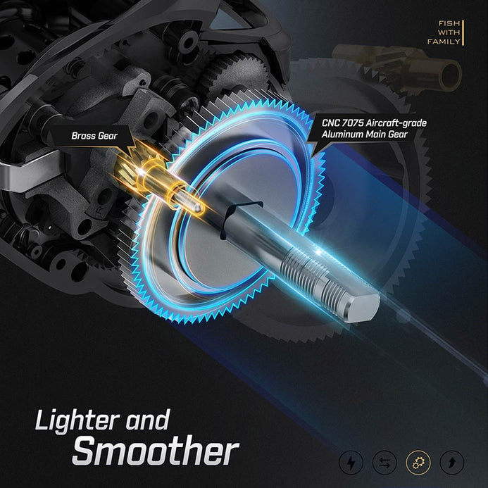 • 【Excellent Durability】The CNC Aircraft-grade hardened, anodized aluminum main gear and brass pinion gear offer exceptional durability, corrosion resistance and impact resistance, which helps you when battling trophy fish.