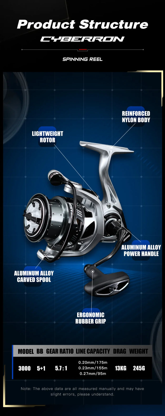 Seasir Cyberron Spining Reel 5.7:1 5+1BB Max Drag 13kg Power Handle