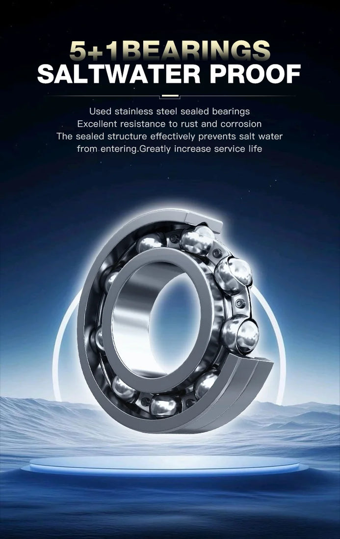 Used Stainless Steel Sealed Bearings ,Excellent Resistance To Rust And Corrosion .The Sealed Structure Effectively Prevents Salt Water FromEntering.Greatly Increase Service Life