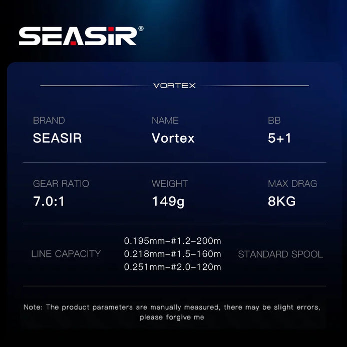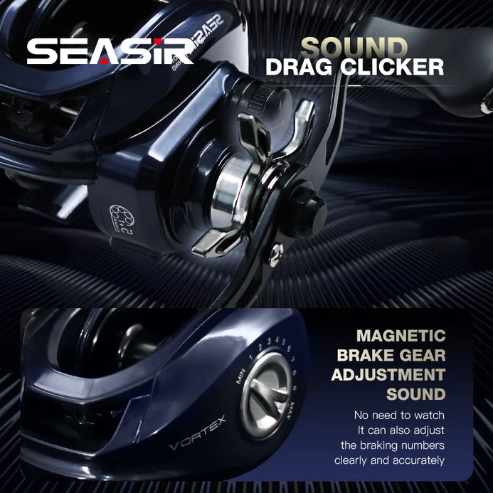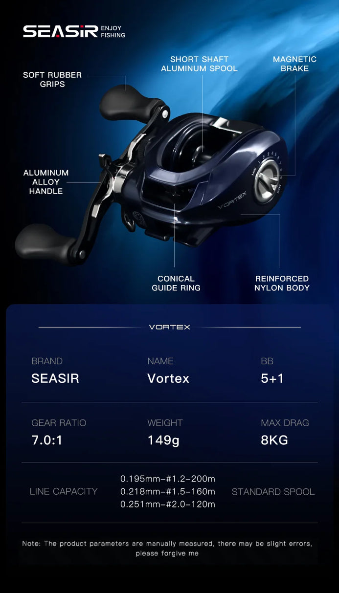 Seasir Vortex Baitcasting Reel 7.0:1 Ratio 5+1BB Max Drag 8kg 149g Weight