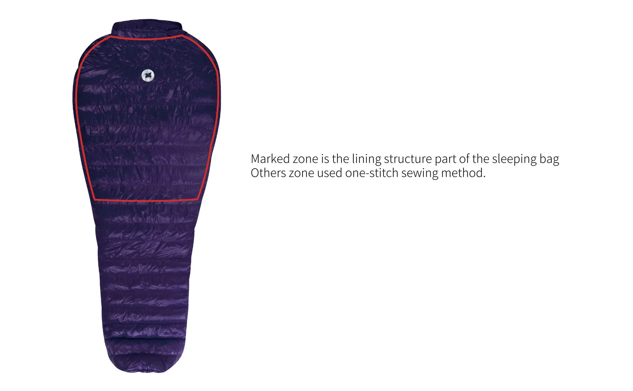 Other than this area we use the traditional one-stitch sewing method, the amount of down filling is relatively moderate, thus greatly enhancing the lightness of the sleeping bag.