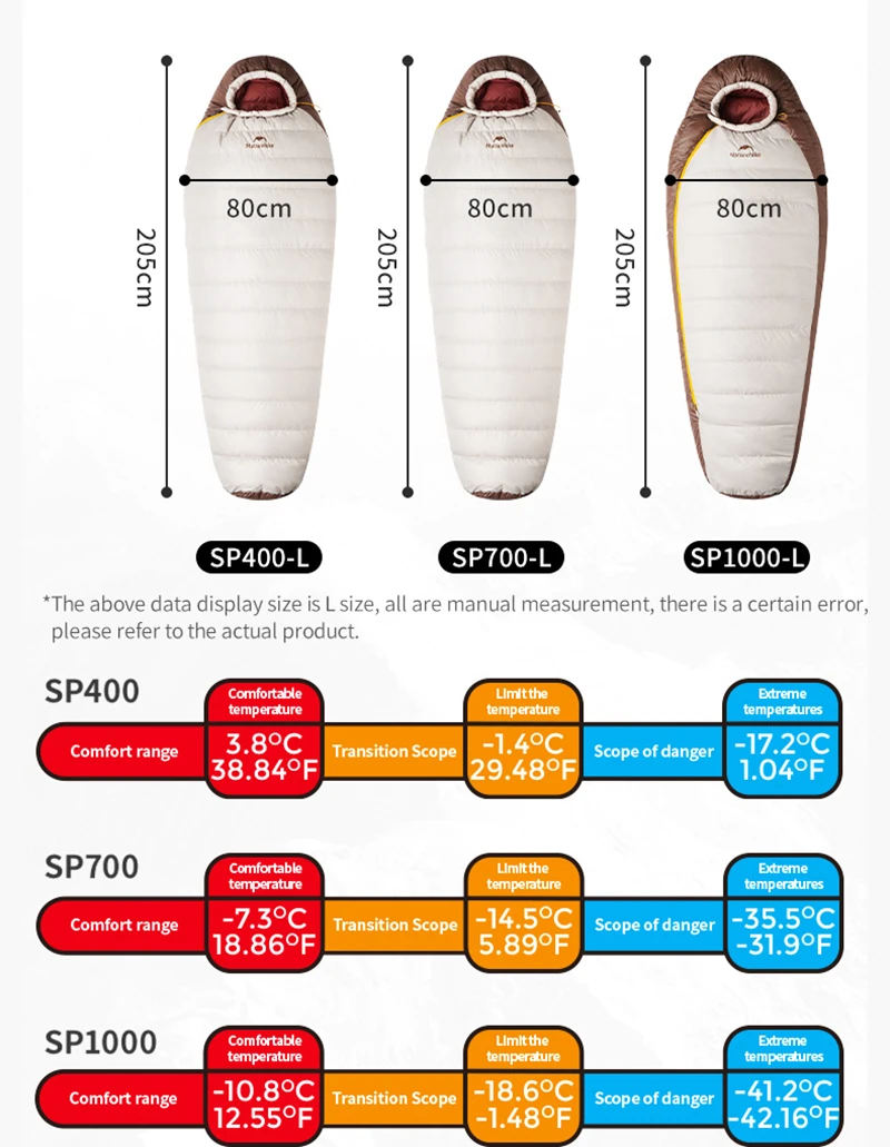 BISINNA Lightweight Winter Sleeping Bag 1.8Kg Naturehike Snowbird 4 Season 650FP Duck Down Sleeping Bag Jungle King CY2020A Double Envelope Widened Sleeping Bag