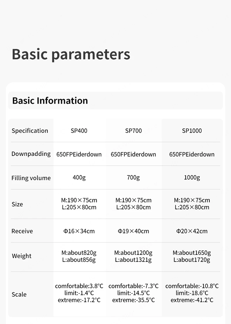 SP550  550g           -1.5℃ / 29.3℉                 -7.6℃ / 18.3℉