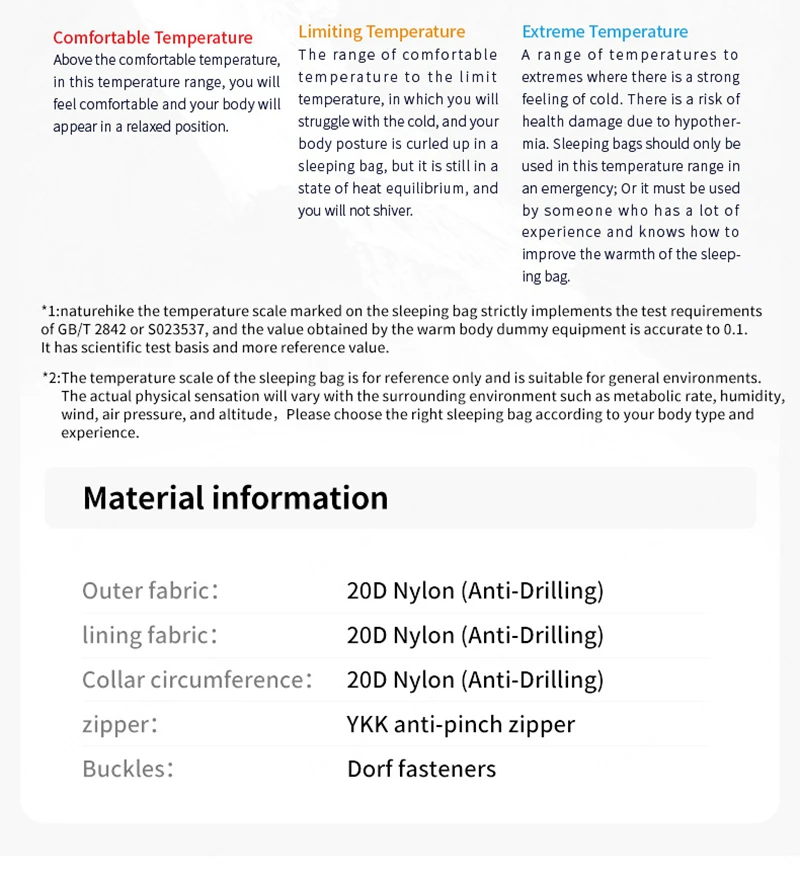 Model Fill Weight Comfort Limit (℃/℉)   Extreme Limit (℃/℉)
