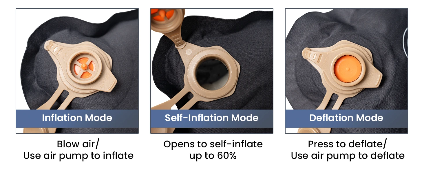 SELF-INFLATING: Inflates and deflates fast with a built-in nozzle design that also enables mattress firmness adjustment; unfold the product to self-inflate to 60% and use the nozzle to fully inflate to 100% within seconds.