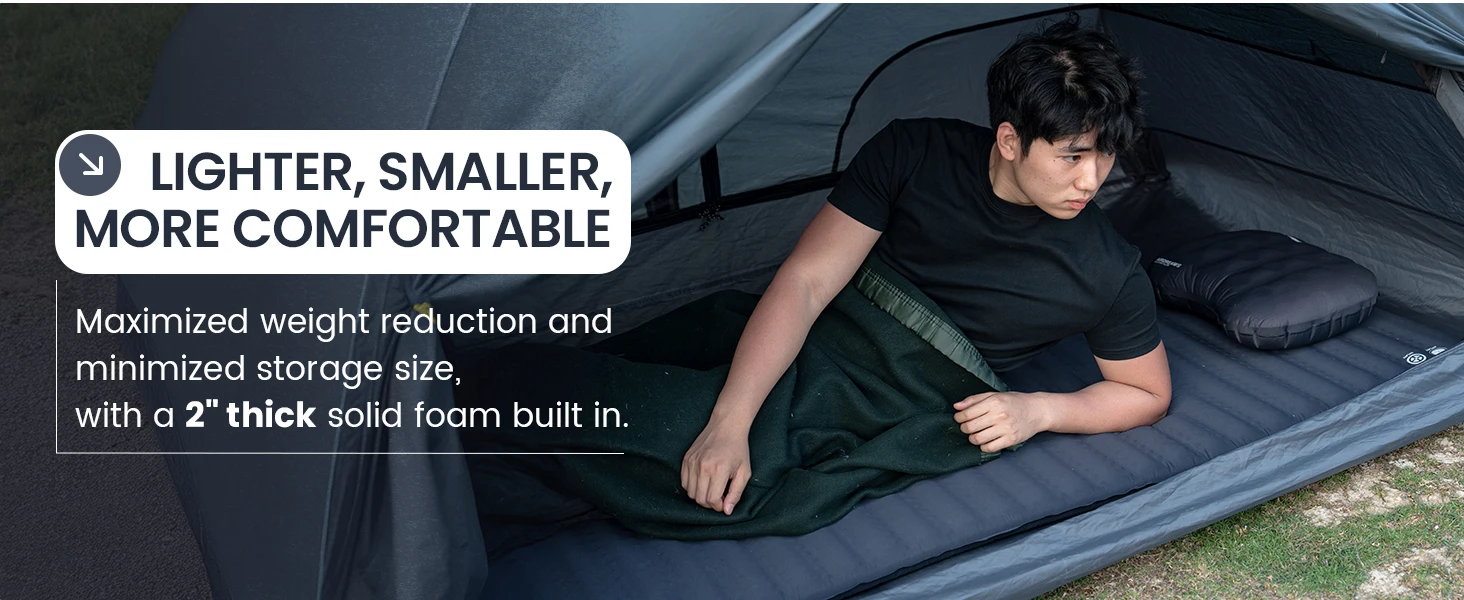 3-SEASON MATTRESS: 4.5 R-value thermal resistance, using advanced fabric-cutting technology and quality craftsmanship to reduce volume (50% less than market average) and weight (30% less than market average) for easy storage and transportation.
