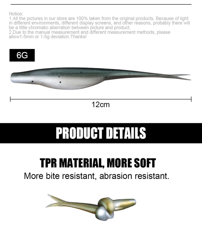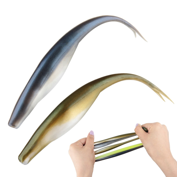 These soft plastic jerk baits have a slim streamlined body, tapering to a sensitive, forked tail. It has a generous belly slot underneath, along with a groove on it's back to aid rigging.These lures can be worked in a number of ways, you can drift them with the occasional twitch, work them with a smooth gliding action or jerk them back for more erratic movement, similar to an injured or distressed baitfish. They also work very well on a jig head in deeper water. Excellent lures for zander, pike, perch, bass and pollack.