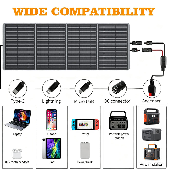 - GOKKCL 200W Portable Foldable Solar Panel IP65 Waterproof