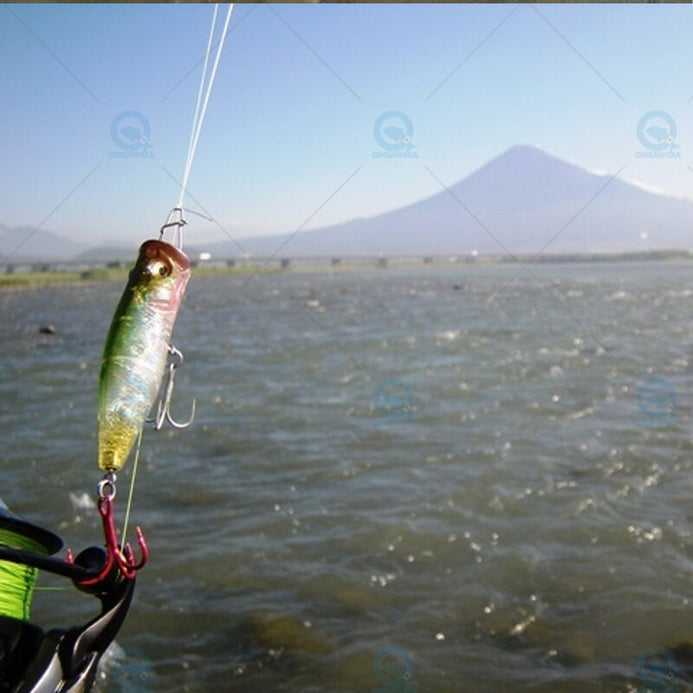 This Chinu popper is designed to reverse the curse of low hook up ratios in topwater fishing. Floating setting and swimming action were carefully designed for both saltwater and brackish conditions.