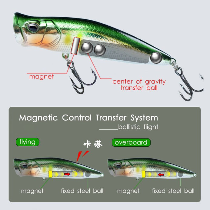 A superb long casting floating popper lure designed to catch perch, catfish, pike and bass!