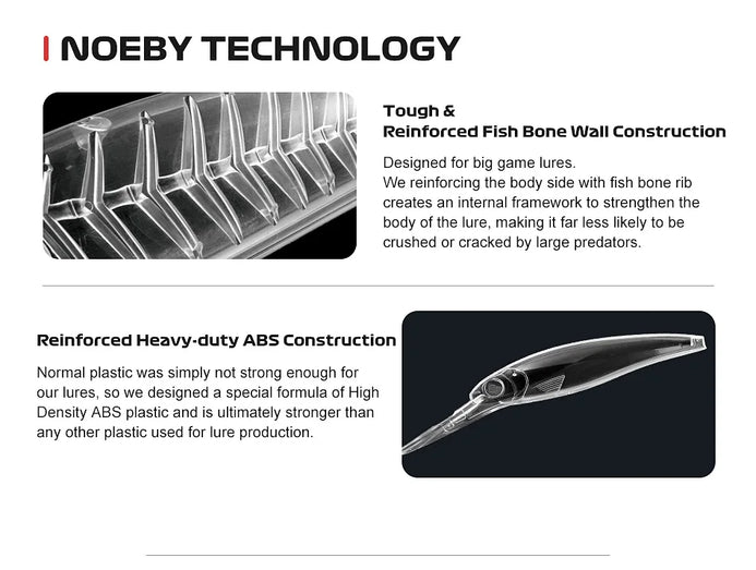 Designed for big game lures.We reinforcing the body side with fish bone rib creates an internal framework to strengthen the body of the lure, making it far less likely to be crushed or cracked by large predators