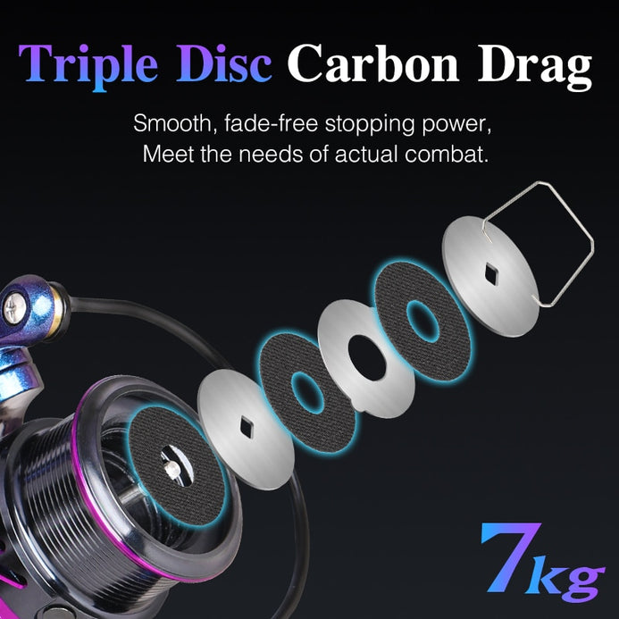 2. Triple Disc Carbon Drag. Provide smooth, fade-free stopping power