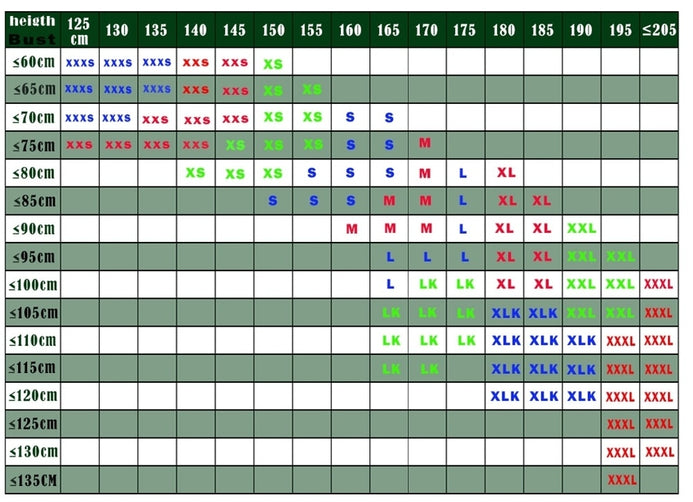 Measure your chest circumference and height, then choose the size