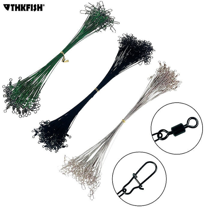 THKFISH 50pc Lead-core Steel Wire Leader With Swivel Double-Lock Snap 32 lb/35 lb