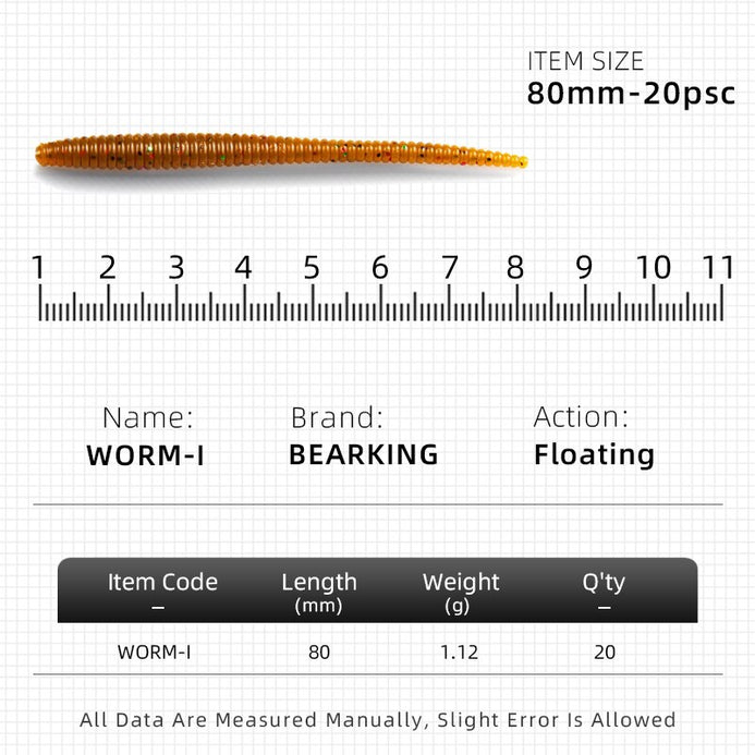BearKing Worm-I 8cm/1.12g 20pcs