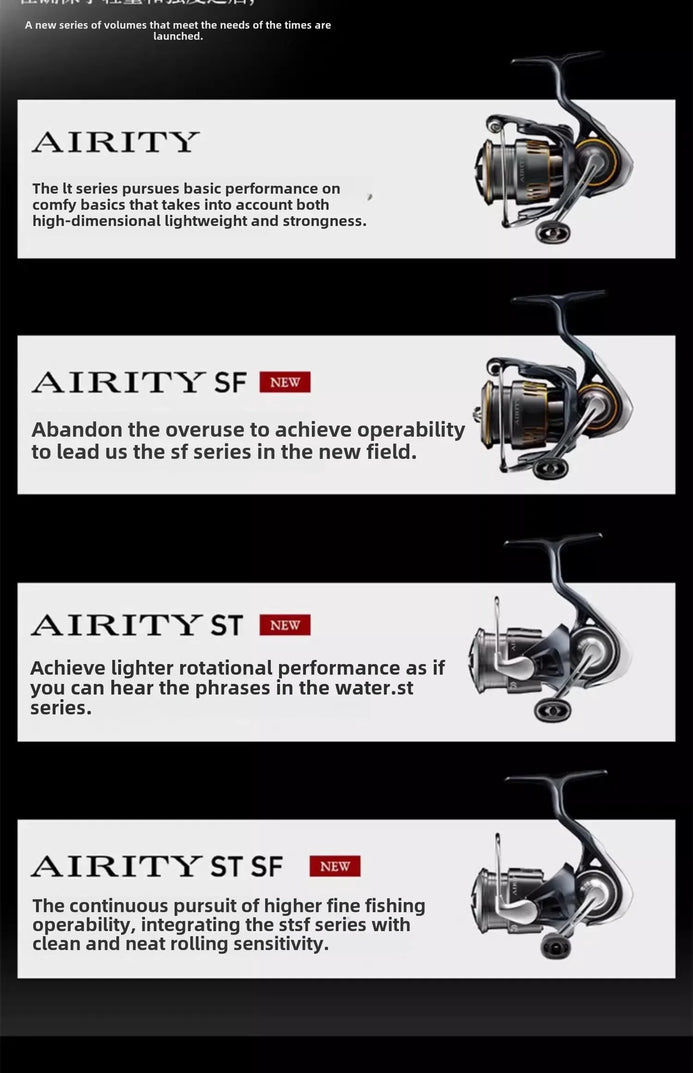As a lightweight and compact spinning wheel of DAIWA, AIRITY is highly trusted by fishing enthusiasts; After ensuring lightweight and strength, a new series lineup that meets the needs of the times has been launched.