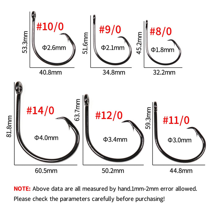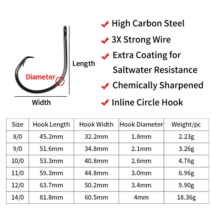 Ellllv 8/0 - 14/0 Saltwater 3X Strong Inline Circle Hook